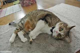 Meille tuli tuoksuvaa postia. Sellainen kuori, jossa oli selvästi sisällä kissanleluja. Päällä luki aCat&liCat. Ajattelin heti että mahtavaa, nyt saan pitkästä aikaa tuoreita ihania käsintehtyjä leluja suoraan kissanlelujen tekijältä. Mutta emäntä sanoi että yksi kerrallaan riittää ja antoi minulle Pingun!